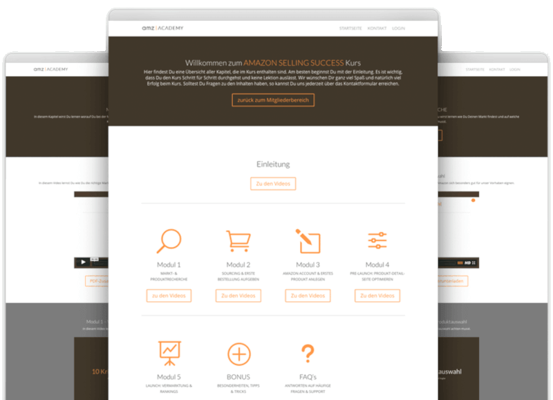 Beginnend mit der Internetpräsenz möchte ich sagen, dass das Design sehr gut gelungen ist und mir die Navigation durchgehend keine Probleme gemacht hat. Mein Basic-Kurs beginnt mit einem Einleitungsvideo zu Daniel und Maurice, bei dem die beiden sich gegenseitig interviewen und erzählen wie zu dem Verkauf bei Amazon gekommen sind. Die beiden haben es geschafft durch ihr lockeres Erzählen und die entspannte Atmosphäre sofort sympathisch zu wirken. Die Sympathie zieht sich durch den kompletten Kurs. Dieser ist in einzelne Kapitel eingeteilt und man wird wirklich Schritt für Schritt durch alles geführt, was nötig ist, um ein eigenes Amazon Geschäft erfolgreich aufzubauen.